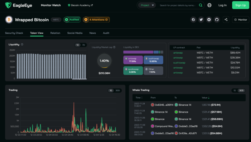 根据 Beosin 旗下 EagleEye 的分析,发现 BTC 的日活跃地址数在今年 9 月份突破一百万,其链上活跃地址数从今年年初开始一直呈现上升趋势。在 10 月 23 日 BTC 价格突破 3 万美金后,BTC 链上地址的活跃程度明显增高。根据 Glassnode 的数据,当前 BTC 活跃地址数最高即将接近 2021 年时候的 DeFi Summer,BTC 生态在经历去年的震荡后开始表现出强大的生命力。