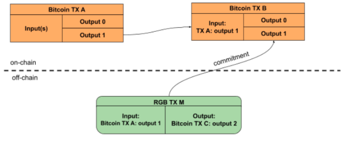 RGB 协议的作用是在闪电网络上为比特币增加了智能合约功能,基于零知识证明的状态通道协议,允许用户在链下进行隐私保护的交易。RGB 协议的核心思想是围绕着共识和链下数据存储构建的。首先,分布式系统最重要的价值是共识的维护,利用比特共识层只需要保留对账本事件的简短的加密提交(cryptographic commitments),证明特定数据存在但不透露实际数据内容的技术,通常通过哈希函数实现,仅在链上存储这些提交去保证数据的真实性和完整性,进而减少了链上数据的负担。RGB 设计的账本数据存储在链下。这意味着所有的合约数据和状态转换都保留在链下,而不是存储在区块链上。利用单次使用密封和状态转换来追踪和验证智能合约的状态,在不将全部数据存储在链上的情况下,有效地处理和验证智能合约的状态和交易。RGB 智能合约在客户端验证模式下,意味着所有数据都保留在比特币交易之外,例如比特币区块链或闪电网络通道状态。使该系统能够在闪电网络之上运作,也为高级别的协议可扩展性和隐私提供了基础。b. Taproot Assets