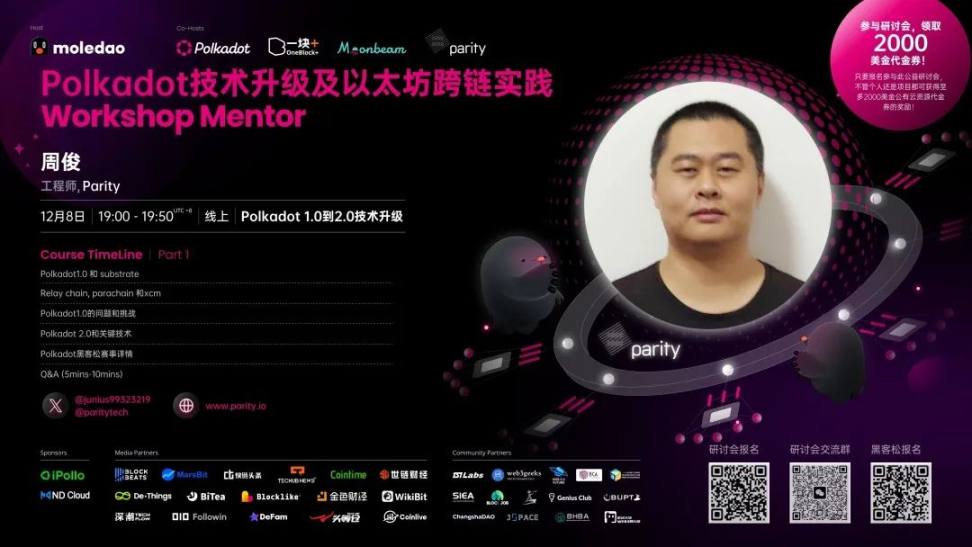为了帮助参赛项目深入了解波卡生态的前沿技术资讯,接触更多 Web3 社区和资深专家,更好地进入备赛状态,OneBlock 联合各大合作社区开启了多个赛前分享活动,并邀请来自波卡生态、Parity 和投资机构的专业人士展开「导师答疑」活动,为参赛项目提供技术、产品、商业等发展建议,帮助更多有创意和技能的年轻开发者们在本届黑客松大赛中获得理想的成绩!