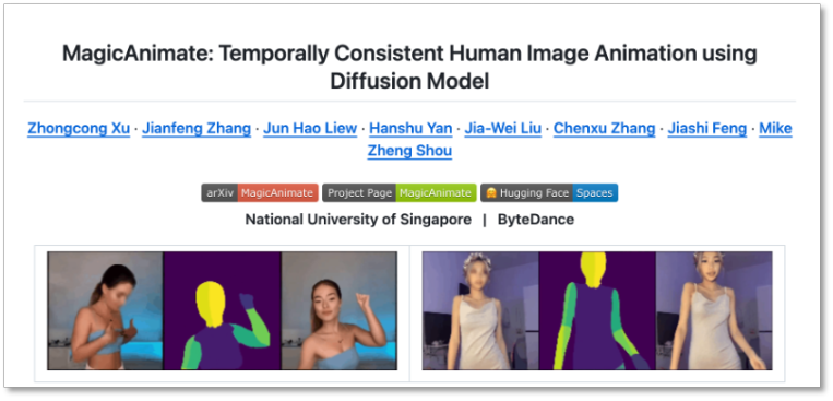 MagicAnimate 是一种基于扩散模型的人像动画生成方法,旨在增强时间一致性、保持参考图像的真实性,并提高动画保真度,由新加坡国立大学 Show Lab 和字节跳动联合推出。