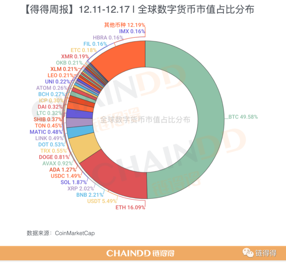【得得周报】全球数字货币总市值较上周下跌约 3.70% | 12.11-12.17