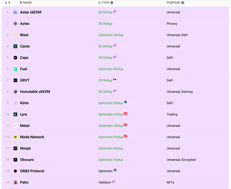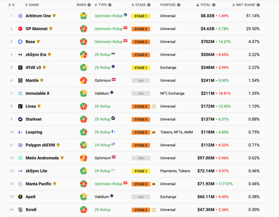 纵览 Layer2 赛道,当下的竞争非常激烈,目前已经上线主网的按照 TVL 排名如下: