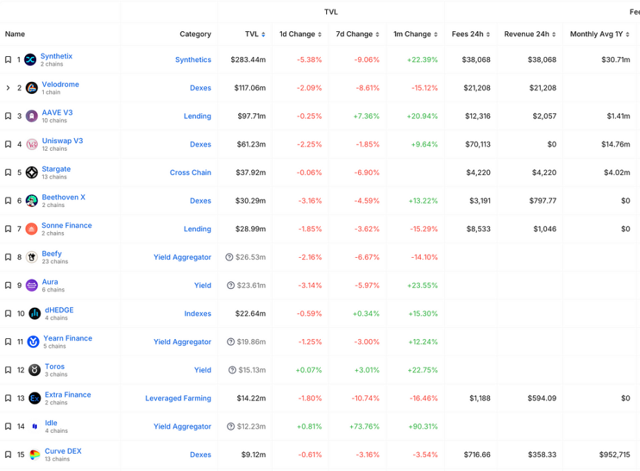 由于 OP 内生态的创新能力较弱,与 Arbitrum 相比,OP 生态略显薄弱,市场也没有大规模对 OP 生态内原生项目跑出来。但是其在基础设施建设方面颇有进展,如模块化代码库 OP Stack 和 OP+ZK 混合证明等,均有资本的大力支持与推动。目前 OP 内已经发行代币的原生项目主要是 Velodrome,其他多是非原生项目项目,生态建设表现一般。