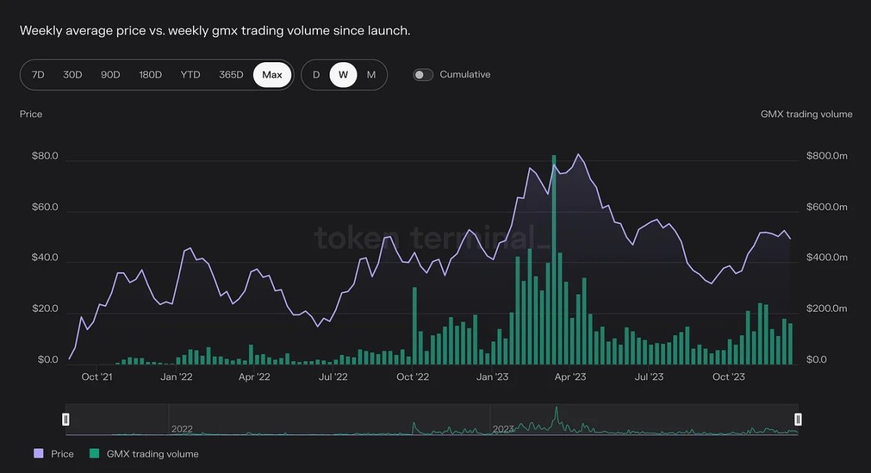 近期,GMX 的整体交易量随着行情整体上涨而有所回升,币价也与其呈现正相关。随着 OKX 钱包通过 GMX 集成增加 50 倍杠杆交易,笔者预计如果行情后续进一步上涨,可能会带来 GMX 链上交易量的上涨,进而促进 GMX 代币的有机上涨。