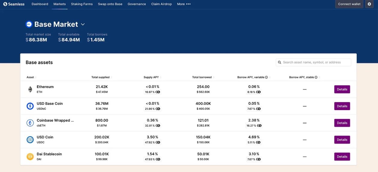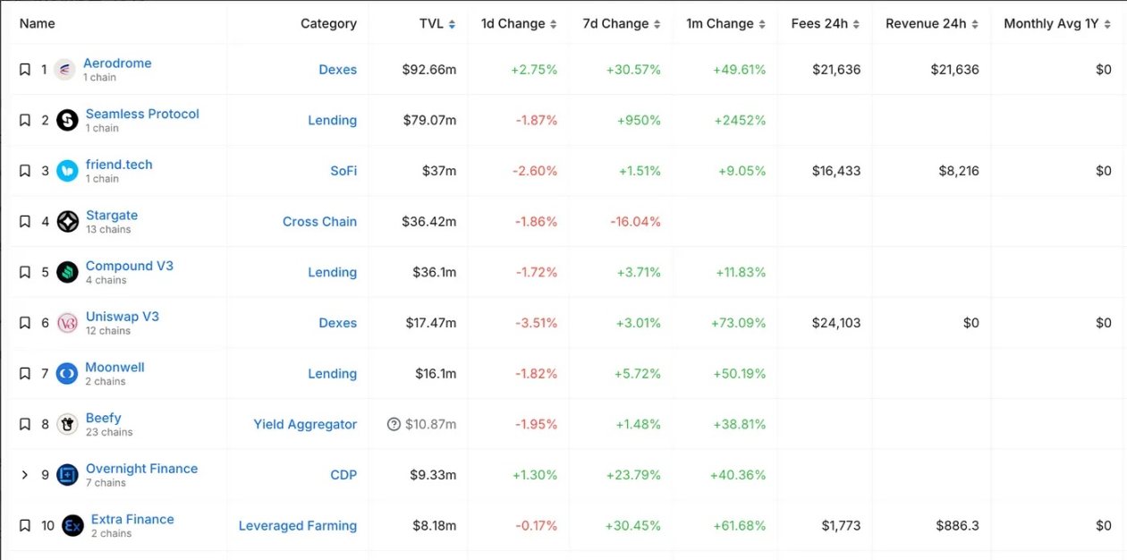 Base 的 TVL 在近期获得了提升,主要得益于 Base 链的 Seamless,Coinbase 宣布上线 Base 生态借贷协议 Seamless Protocol 治理代币 SEAM,SEAM 将成为第一个也是目前唯一一个在 Coinbase 交易的 Base 生态原生项目代币。因此大量用户产生了对 Base 链的项目交互空投预。