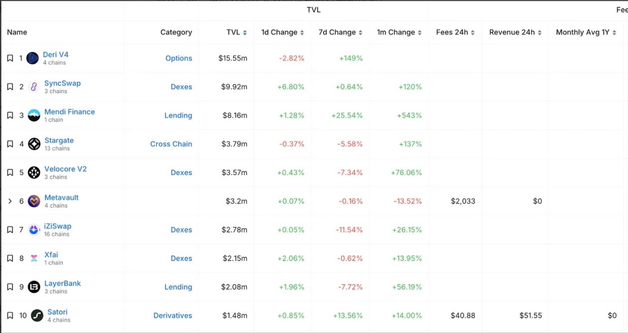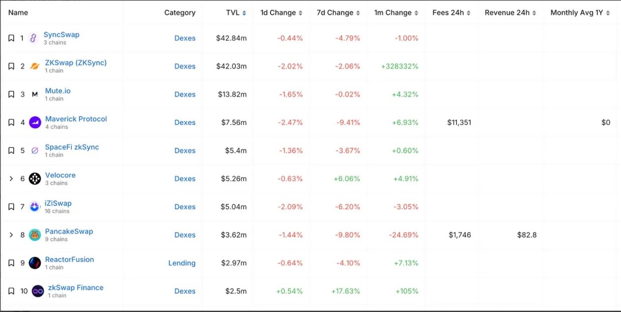 与其它生态中 DEX 形成强大的马太效应不同,zkSync 上的 DEX 竞争尤为激烈,目前还没有亮眼的 Lending 业务的出现,因此这个众多开发者和 VC 押注 zkSync 生态。