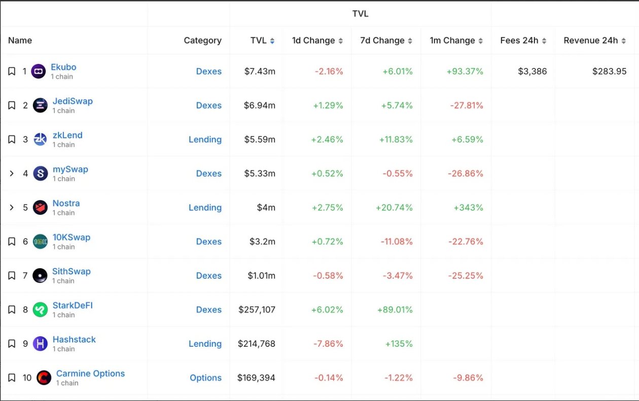 由于技术原因,StarkNet 的 TPS 较为受限,Gas Fee 偏高,导致整个生态建设落后。但是受益于 StarkNet 内开发环境,许多的创新项目在孵化孕育: