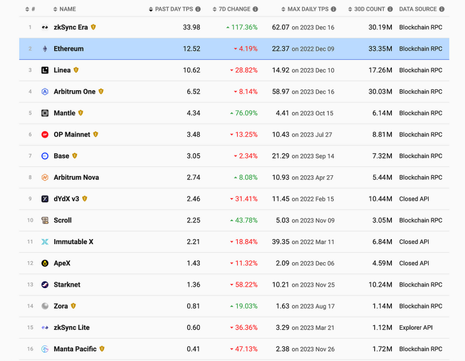 从数据看,已经上线主网的 Layer2 中,仍然是 OP 技术占据大部分 TVL,主要是因为 OP 技术的良好用户体验以及高 TPS,让这类型的 Layer2 能够牢牢占据生态的先发优势。
