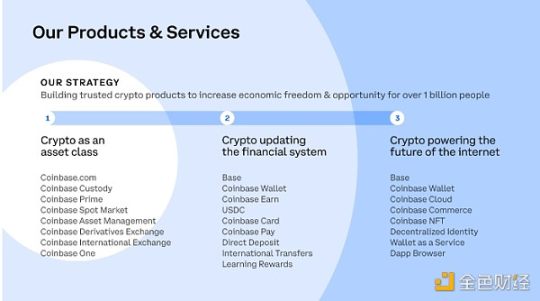 Coinbase 正在建设一个明确规则、合作伙伴关系和受信任的产品与基础设施的舞台,以支持当今和未来的创新,从目前正在进行的金融系统更新,到加密货币的下一个篇章——当全球 10 亿人使用基于加密货币的去中心化服务、云服务和商业时,这表明链上是新的在线方式。