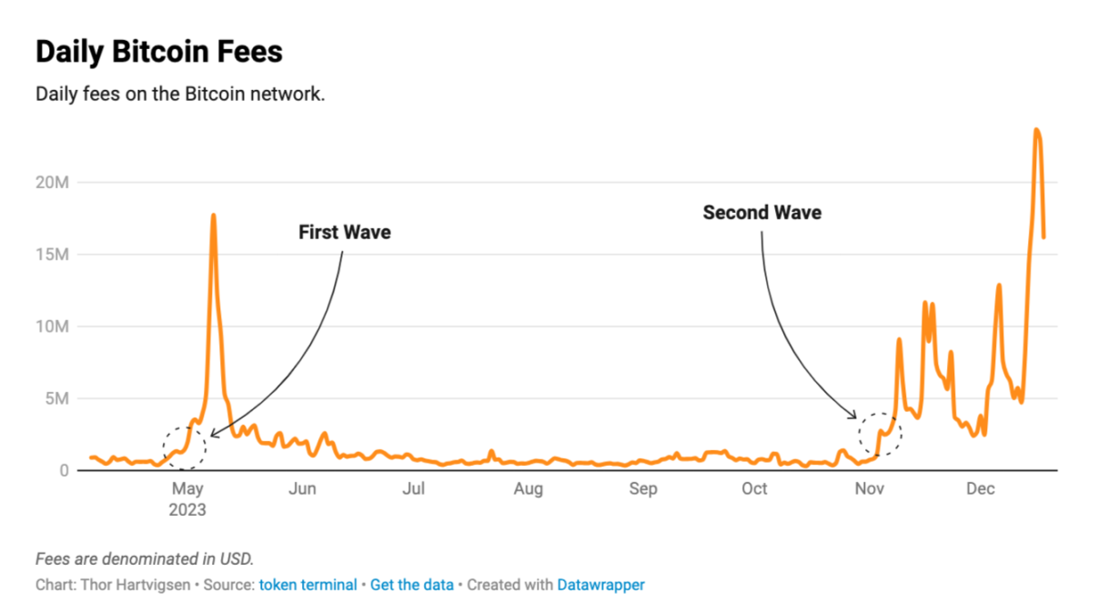 事实上,这些铭文是比特币网络交易费用大幅上涨和处理时间变慢的幕后推手。