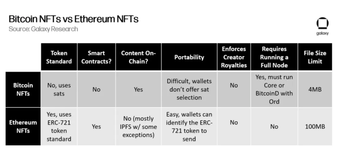 Ordinals NFT 与以太坊等链上广泛使用的 NFT 有很大不同。
