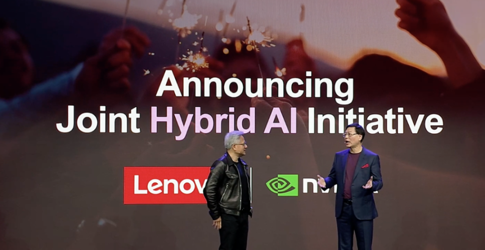 黄仁勋与杨元庆一起宣布混合人工智能计划|联想