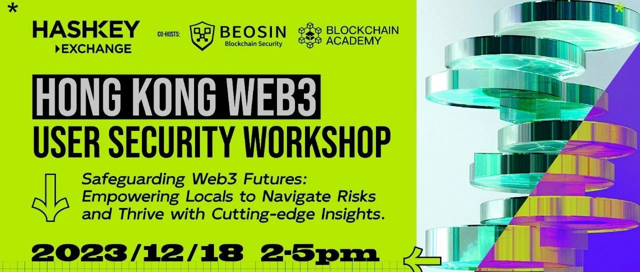 12 月 18 日,知名数字资产交易平台 HashKey Exchange 与 Beosin 学院、Blockchain Academy 成功举办名为《Hong Kong Web3 User Security》的投资安全工作坊。本场主题活动深入讨论了 Web3 安全的要点,主题涵盖用户安全,合规监管和 Web3 未来发展,旨在提高香港普通用户对于 Web3 监管和投资的认知。