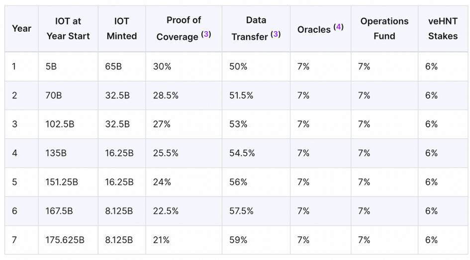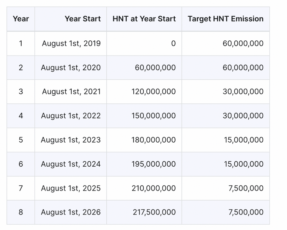 发行计划将每 2 年减半一次,与 HNT 发行减半保持一致。
