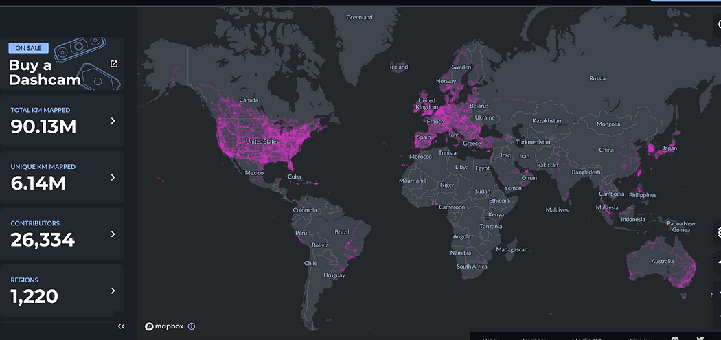 Hivemapper 是一个基于区块链的地图网络,创建了一个奖励贡献者的去中心化的全球地图。贡献者通过安装 Hivemapper 的行车记录仪就可以进行数据采集,同时可以赚取 Native Token HONEY 作为奖励。在 Hivemapper 的设定中,行车记录仪等同于“矿机”。通过一个无缝的移动应用程序与 Hivemapper 网络原生集成,并将映射置于自动驾驶仪上并自动上传。安装 Hivemapper 行车记录仪,就可以在驾驶的过程中挖掘 HONEY 代币奖励,同时收集 4K 街道级图像并绘制世界的地图。