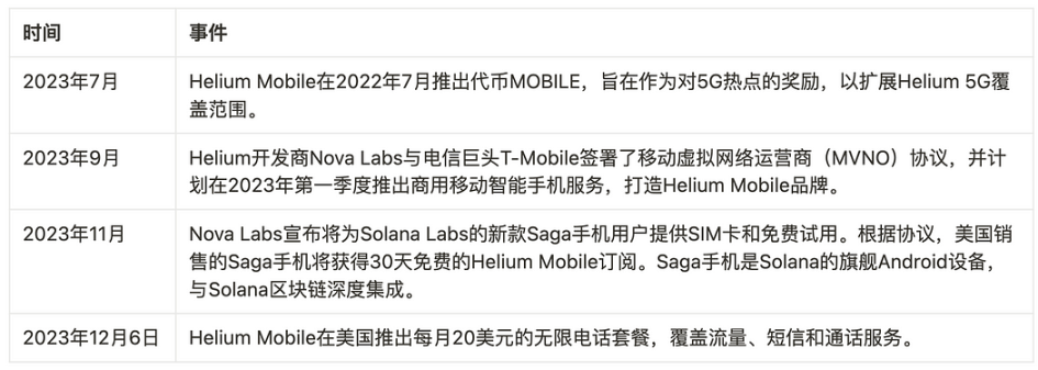 Helium 开发商 Nova Labs 前期与 T-Mobile 合作推出商用移动智能手机服务,先是在 Miami 推出每月 5 美元套餐,近期 Helium Mobile 在全美推出每月 20 美元的无线电话套餐,结合推出与 Solana Labs 新款手机的 SIM 卡免费试用活动。点爆 Mobile 行情,