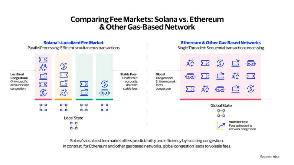 优先费用可能导致“gas 战”,但 Solana 的区块空间结构化设计可以防止个别“热点”活动(如 NFT 铸造)主导区块空间。这有助于通过为其他活动保留空间来最小化单个热点对费用的影响。