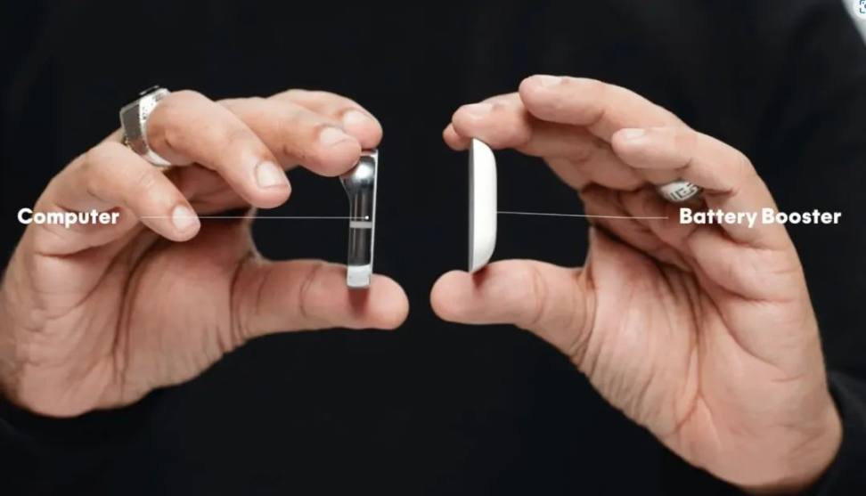 AI pin 配有一个 "电池增强器",用户可以热插拔电源。Pin "拥有独特的两件式设计,包括主电脑和电池助推器。它们通过磁力连接,并通过衣服和服饰进行无线供电,用户可以以各种方式佩戴 Ai Pin。凭借其永久供电系统,用户可以随时热插拔电池助推器,确保不间断使用和全天候续航: