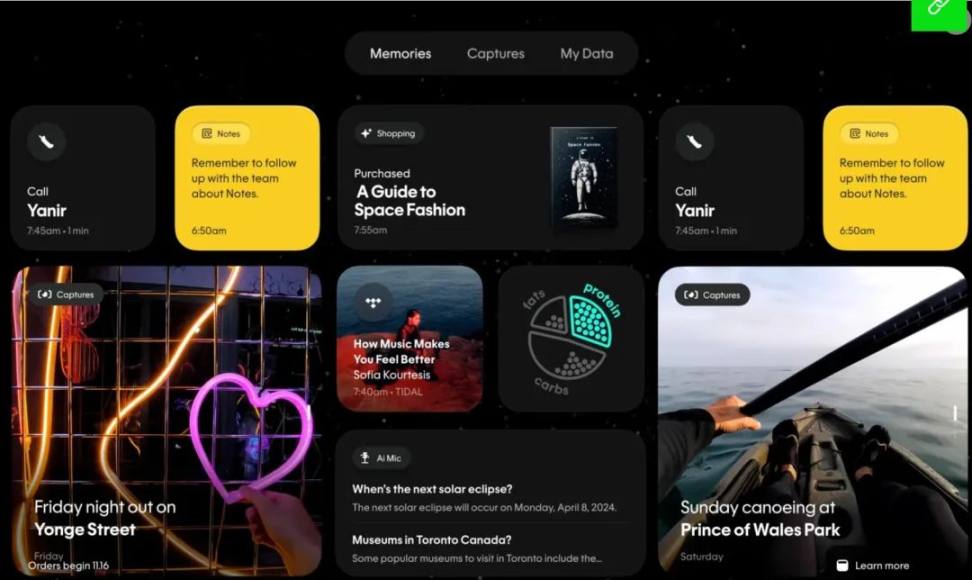 因为语音和触摸界面严重限制了设备上的定制,因此 Humane’s Ai Pin 有 Humane.center,可以在设备之外的环境进行定制。为了管理和访问用户数据,包括照片、视频和笔记,Ai Pin 可以连接到 Humane.center。这个平台可作为设备的中心枢纽,确保从设置到日常使用的交互过程流畅(有点像古时候的 iTunes?)。购买 Ai Pin 后,用户会被邀请通过一个受隐私保护的门户登录,使设备能够根据个人喜好定制服务。