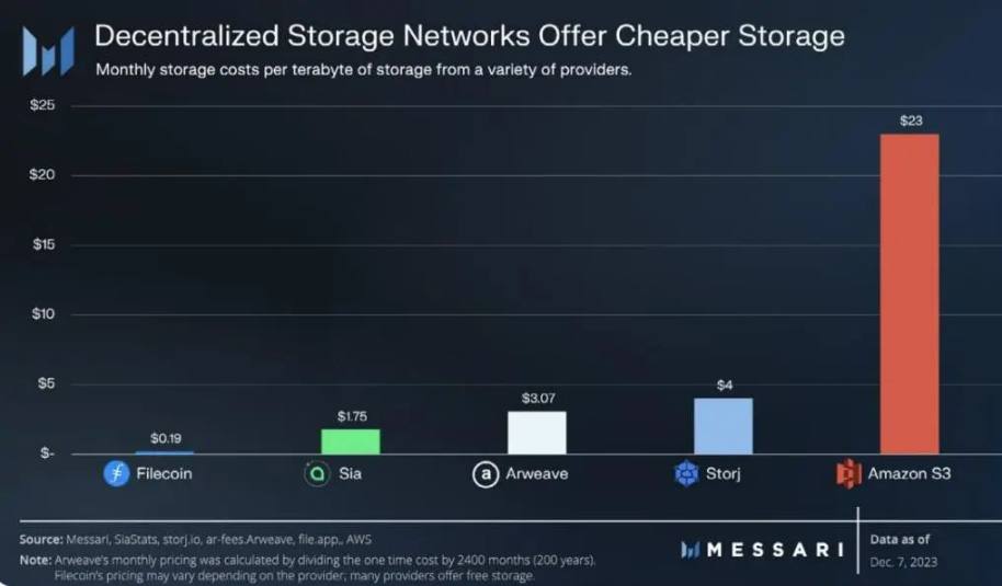 1. Decentralized Storage:目前的云存储市场拥有 800 亿美元的市场规模,并以每年 25% 的增速持续增长。而尽管去中心化存储服务的成本比 Amazon S3 等云服务提供商低 70%,目前去中心化存储的市场占比仍不足 1%,去中心化存储仍有巨大的市场机会。
