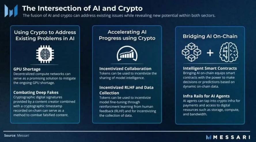 Messari 认为,AI 的进步会增加对加密货币解决方案的需求,以比特币为代表的加密货币也天然地适合作为 AI 的支付货币。