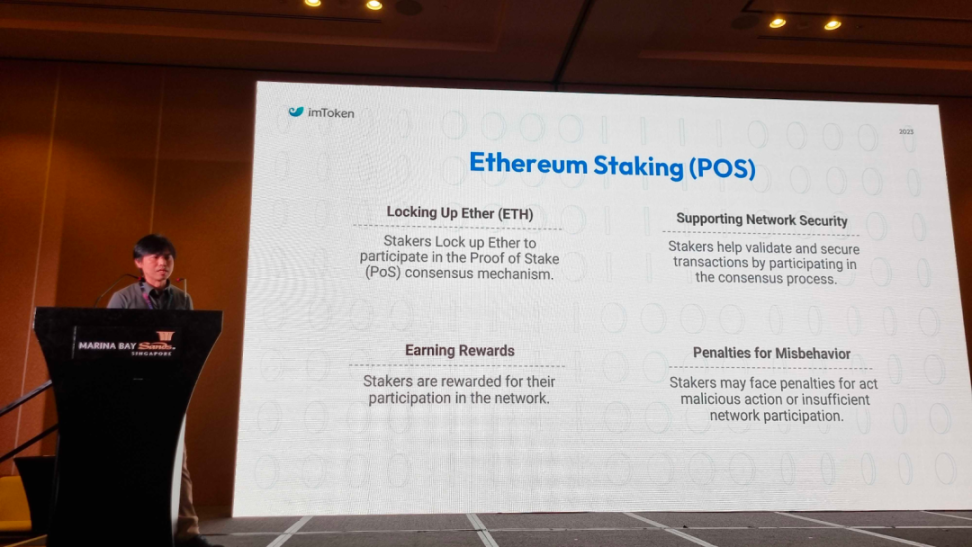 在大会上,imToken VP Chuck Ko 作为发言人,与大家探讨了「可持续的 Web3 以太坊质押」。另外,imToken 产品负责人 Jiadong 也分享了钱包安全和去中心化托管的相关话题。