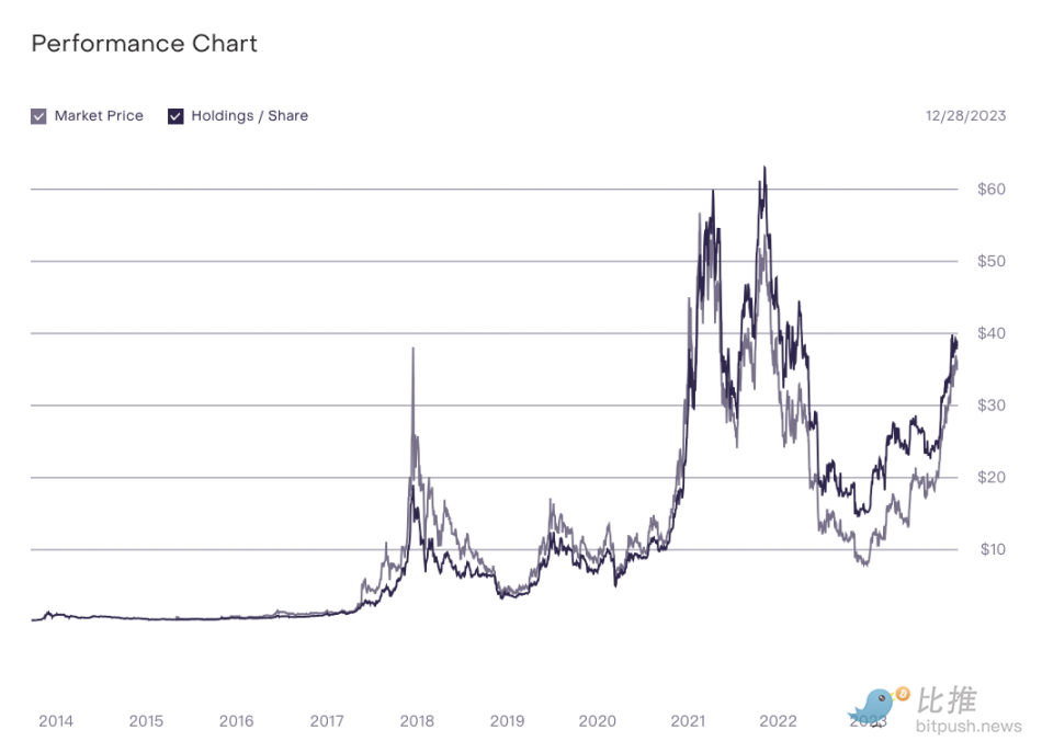 除了今年比特币的上涨之外,GBTC 还因为明年将获得 SEC 许可转换为 ETF 的前景而受到提振,此举将使其能够通过传统证券交易所进行交易并获得流动性措施, 将使其市场价值与其资产净值更加一致。