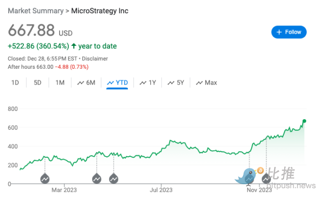 12 月中旬,BTIG 分析师将 MicroStrategy 的目标价从 560 美元上调至 690 美元,理由是情绪改善以及比特币减半即将到来。