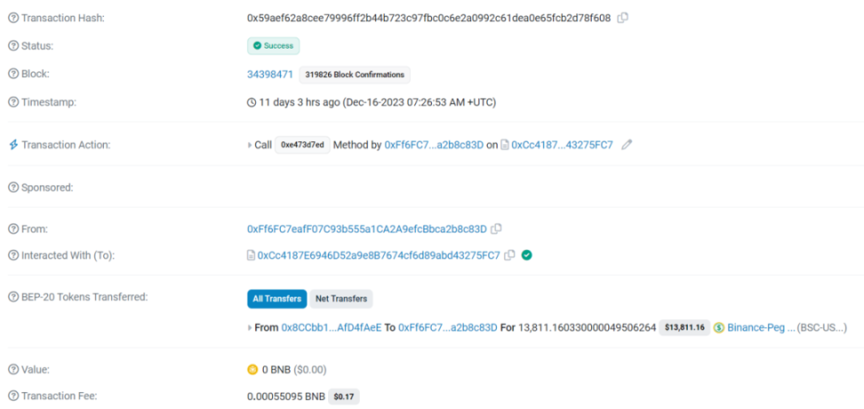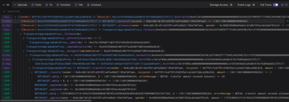 (https://dashboard.tenderly.co/tx/bnb/0x59aef62a8cee79996ff2b44b723c97fbc0c6e2a0992c61dea0e65fcb2d78f608)