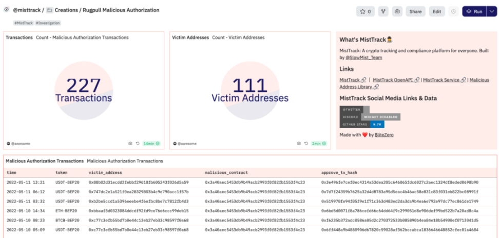 (https://dune.com/misttrack/rugpull-malicious-authorization)