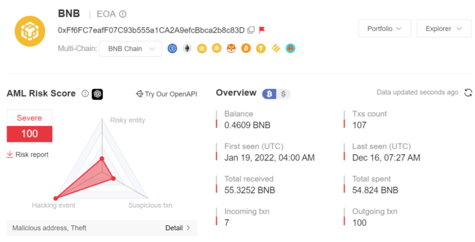 目前相关地址已被 MistTrack 拉黑。
