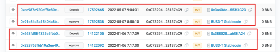 根据上述总结出的特征及借助 Dune 分析,我们还发现了另一个用户在 2022 年 1 月授权了上述提到的恶意合约地址 (0x3880285800a89AB3C4338bf455acdA3da6f8fA24),随后在 5 月份又授权了另一个 RugPull 恶意合约地址 (0x3a40AeC5453dB9b49ACb2993F0F82FB1553f4C23)。