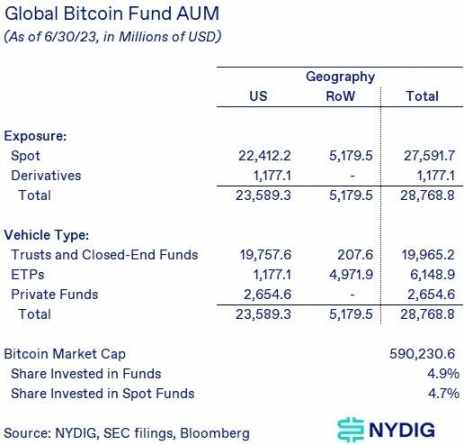 现货 ETF 与现有的替代投资产品结构相比,比信托 / 封闭式基金(CEF)的跟踪误差更低(BITO、BTF 和 XBTF 的回报每年落后于比特币现货价格 7%-10%),比私募基金的流动性更好,以及潜在管理费成本更低的优势(相比 GBTC),例如 ark 在其申请文件中将费率定为 0.9%。