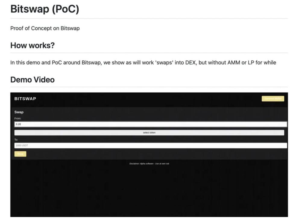 目前 RGB 生态正在积极探索 DEX 方案,以解决 RGB 资产流动性问题。Bitswap 的演示和概念验证中,展示了如何将“SWAPS”引入 DEX,但暂时没有 AMM 或 LP。目前还处于验证阶段,非常早期,同样值得关注。