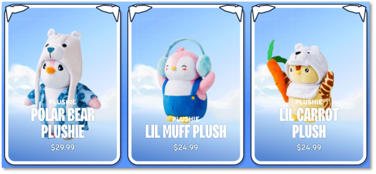 8 月,知名蓝筹 NFT 项目 Doodles 与 Crocs 联名推出限量版“洞洞鞋”,72 小时内售罄。另一个知名蓝筹 NFT“胖企鹅”Pudgy Penguins 与实体玩具结合,推出 Pudgy Toys,在亚马逊推出的两天内,销量超两万个,销售额超 50 万美元。
