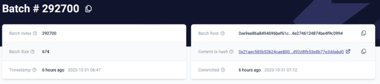 Batch 292700 已经被上传至 L1,进入 Committed 阶段。来源:https://explorer.zksync.io/batch/292700