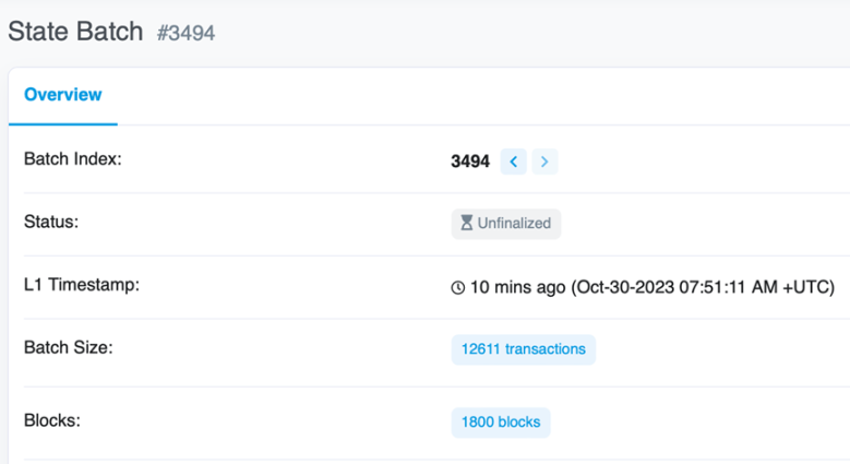 如果是上传了但还未在 L1 被 Finalized 的 Batch 的话,就会显示为 Unfinalized: