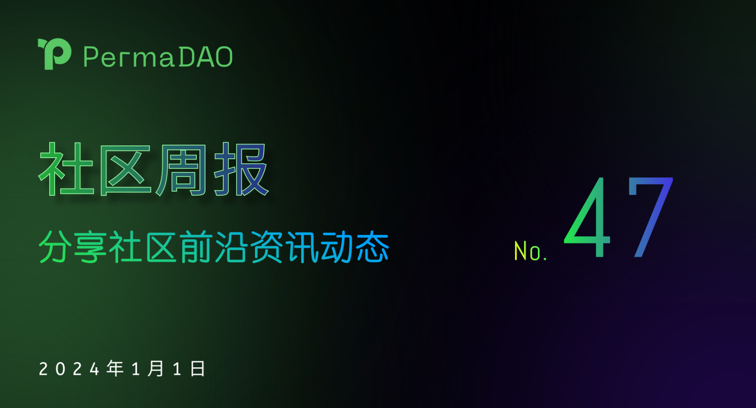 新年伊始,PermaDAO 衷心祝愿所有小伙伴新年快乐!在过去的一周里,PermaDAO 社区贡献者们坚持不懈地投入建设工作。多篇优秀文章如《 Messari 点名 KwilDB 和 WeaveDB,来头是什么?》和《 记者之眼系列 》备受小伙伴们青睐。期望在新的一年里,大家能够继续保持初心,为 PermaDAO 的繁荣做出更多贡献。让我们携手共同推动 Web3 领域的发展,书写更多精彩篇章。Let's Build~