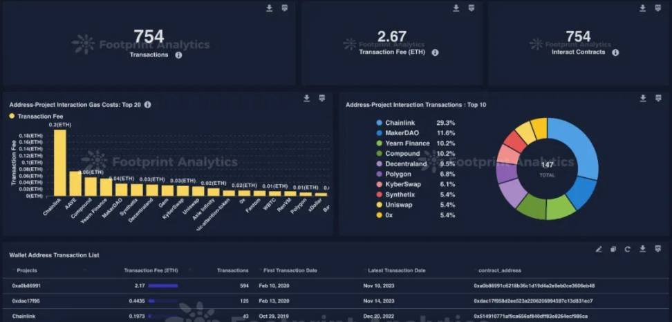 在 Footprint 等平台上进行钱包地址分析,可以挖掘到如下数据: