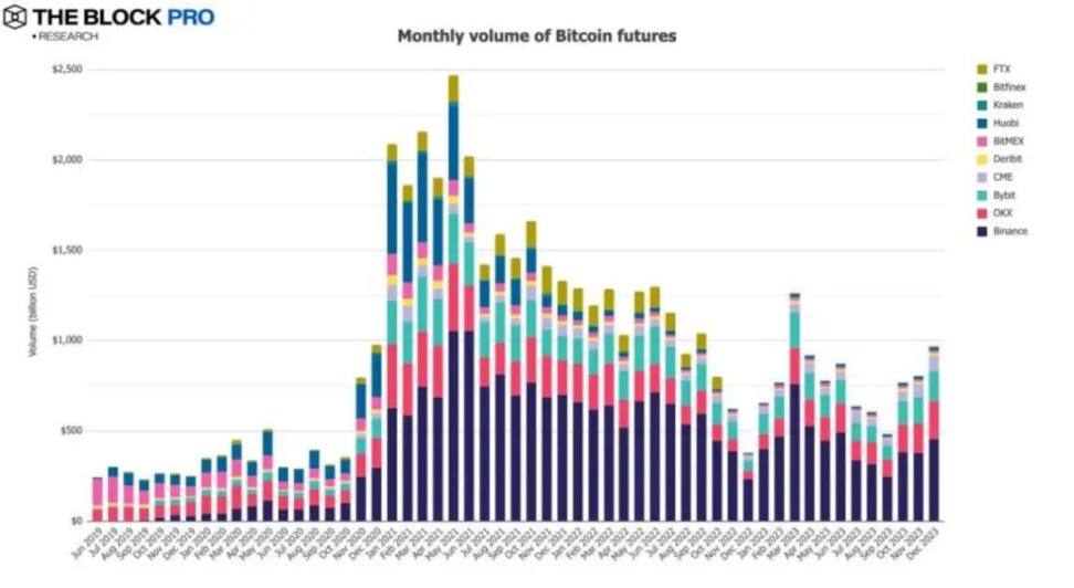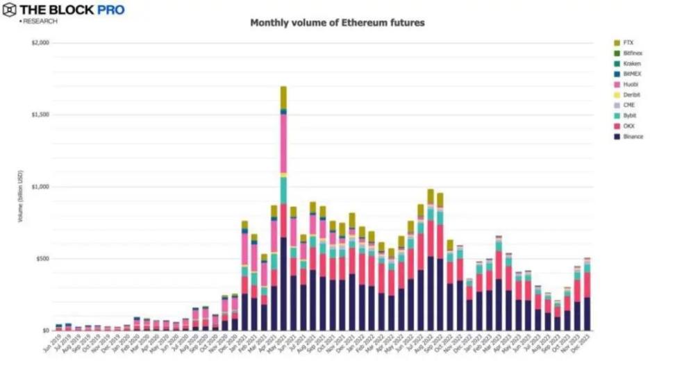 11、12 月以太坊期货月均交易额上涨至 5070 亿美元,增长幅度为 13%。