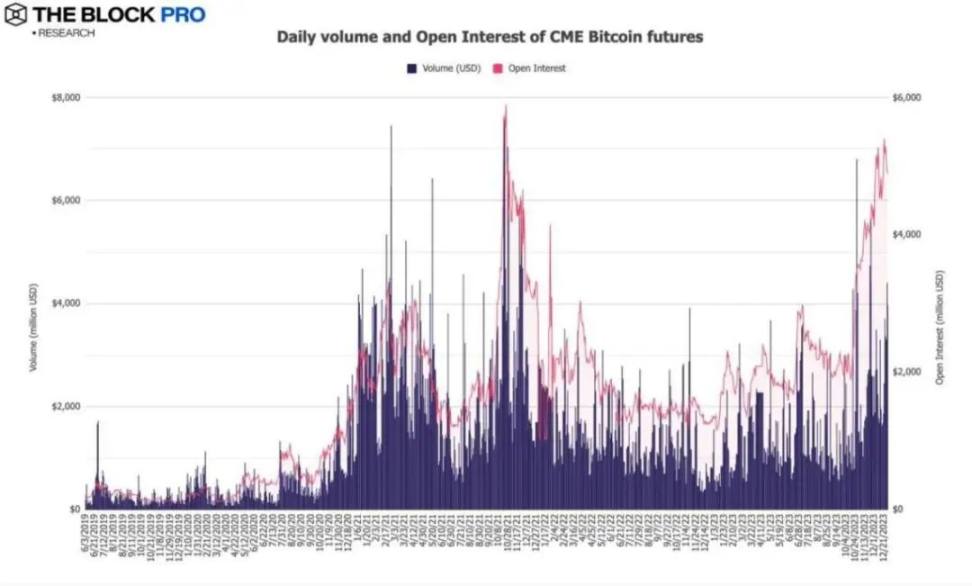 10、12 月芝商所比特币期货未平仓量增长了 11.3%,升至 49 亿美元,日均成交金额(daily avg volume)增幅达到 13.5%,升至约 26.6 亿美元。