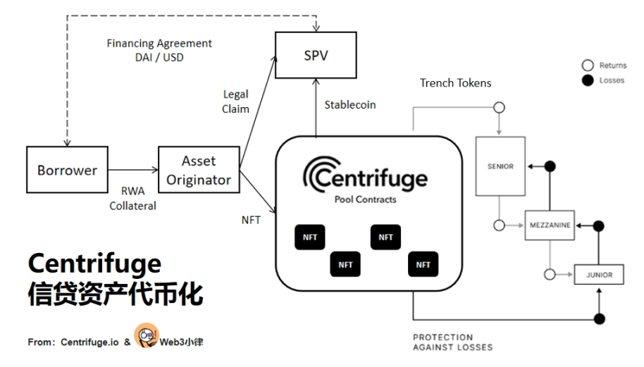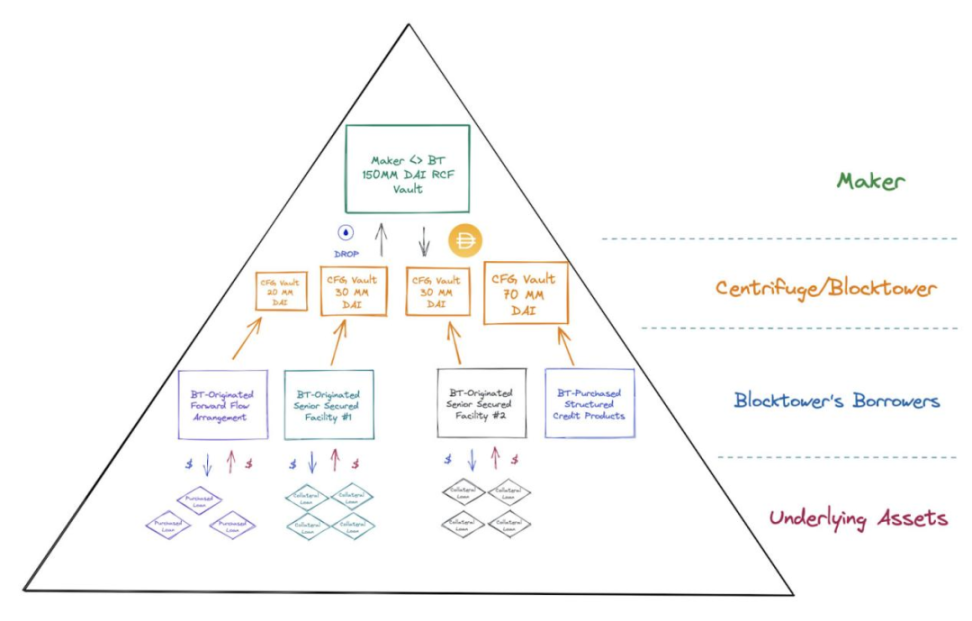 Centrifuge 在早期就参与了此前 MakerDAO 的多个信贷资产 RWA 项目,如上述提到的 New Silver Restructuring 与 BlockTower Credit。具体的流程在此不作展开,有兴趣的可以阅读我们此前分析 Centrifuge 的文章——从 RWA 本质,看去中心化资产融资协议 Centrifuge。