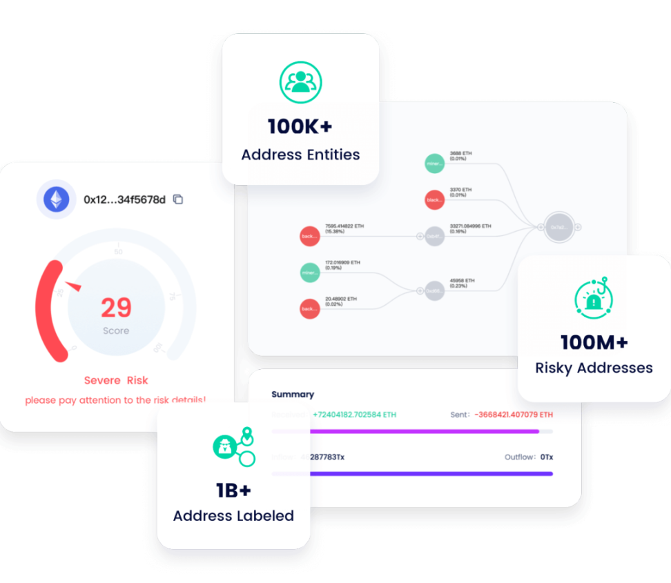 Beosin KYT 虚拟资产反洗钱合规和分析平台,依托几十亿的地址标签和黑地址库进行的区块链大数据分析技术和先进的 AI 技术,能帮助 VASP(Virtual Asset Service Providers)建设 KYT(Know Your Transactions)及持续性风险评估的能力,通过分析海量链上交易信息,识别交易,再利用系统中的海量实体地址库以及机器学习分析技术从评估风险交易。目前已经为全球多个客户提供服务,使其符合反洗钱监管要求。