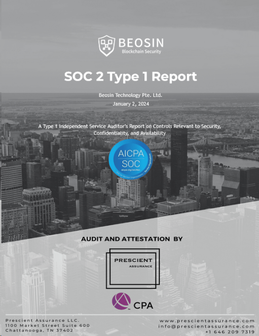 突破区块链安全领域的壁垒,Beosin 作为亚洲首家 Web3 安全审计公司正式通过国际权威鉴证标准 SOC 2 审计,成功获得了备受认可的 SOC 2 审计报告。这一里程碑式的成就彰显了 Beosin 作为行业领先企业的非凡实力和卓越能力。