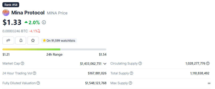 MINA 当前通胀率达到 11% 左右,该代币于 2021 年 4 月上线,也意味着年通胀率在 3.7% 左右。