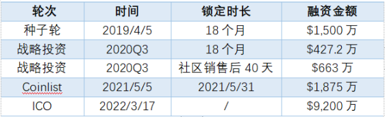 Mina 总共进行过三轮融资,共计融资总额 1.4 亿美元,投资方包括 Coinbase Ventures、MetaStable、Polychain Capital、Bixin Ventures、Three Arrows Capital、HashKey Capital、Fenbushi Capital 等顶级机构。
