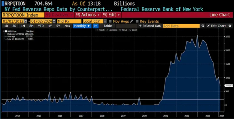 1. RRP 将缓慢下降,这种流动性将在第二季度末继续支撑金融市场。