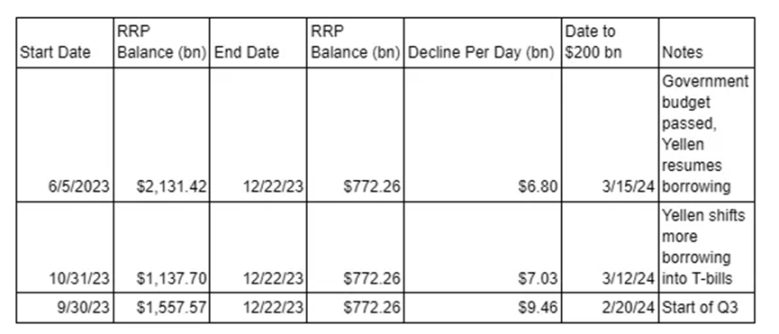 我们无法知道 RRP 下降的速度(如果有的话)。因此,我将密切关注变化的速度。如果交易策略与我的预测有重大偏差,我将相应地调整我的交易策略。无论如何,我在 2023 年下半年大量买入了加密货币,我相信从增加风险的角度来看,现在到 4 月份都是一个禁区。