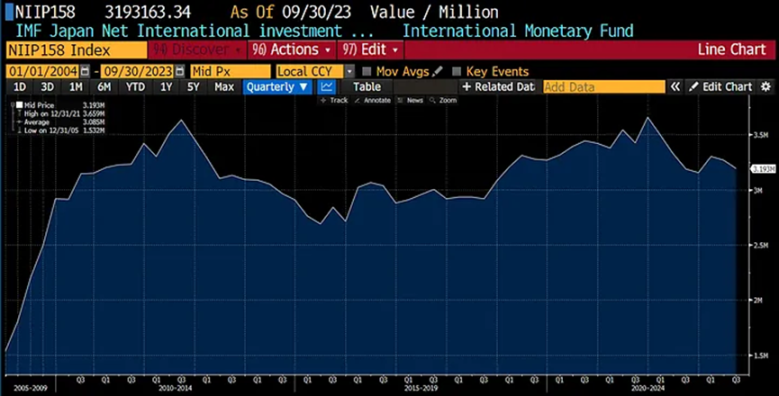 这是来自国际货币基金组织的数据,该数据估计日本的净国际投资头寸为 3.3 万亿美元。
