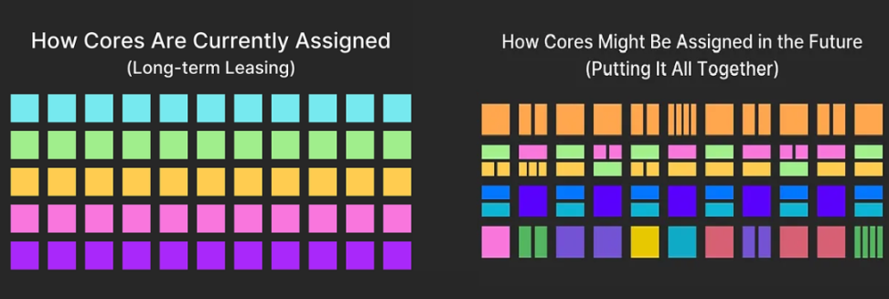 因此,这个新的愿景专注于 Polkadot 的资源,这是一个安全、灵活且可用的区块空间,可以通过在核心上保留一些时间来访问。在分配核心时间和使用核心方面的灵活性可以实现网络效率和区块空间利用的最大化。